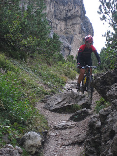 Die 5te Etappe führte uns über den Zoggler Stausee zur Spitzenalm. Am Tag zuvor verließen mich die Kräfte (wie vorausgeahnt) und nun bekam ich massive Sitzprobleme. Schotterweg bergauf - also stupides hochkurbeln... Ich hatte solche Schmerzen, da half auch keine Gesäßcreme mehr. Doch es gab einen Lichtblick. Ich wusste, dass es ab der Spitzenalm trailig weiter ging - eine Wohltat, wenn man den allerwertesten auch mal entlasten kann. Witzig war, dass wir auf der Alm wieder wie Aliens betrachtet wurden, achja und als man das "Schmalkalden" auf meiner Vereinsweste gelesen wurde, da waren wir dann die Oberhofer Biathletinnen... ;-)
