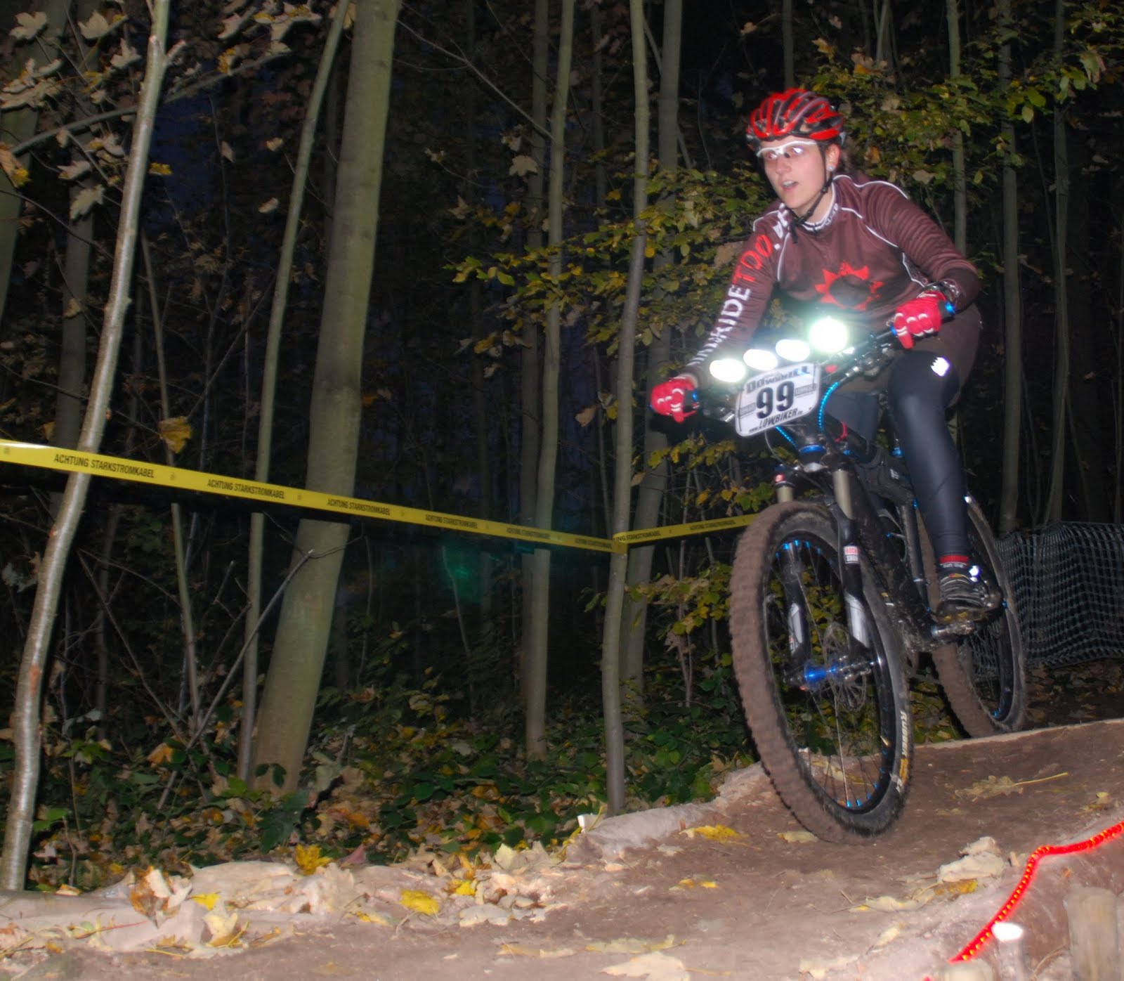 Da Basti nach der Schulter OP noch nicht wieder auf das Rad darf, haben wir unsere vorhandenen Lampen auf den breiten Lenker montiert – und eine auf den Helm. Mit 5 kleinen Sonnen war ich also ganz gut gerüstet für die Sonderwertung ;-)